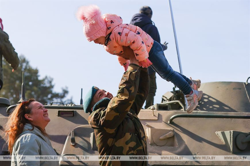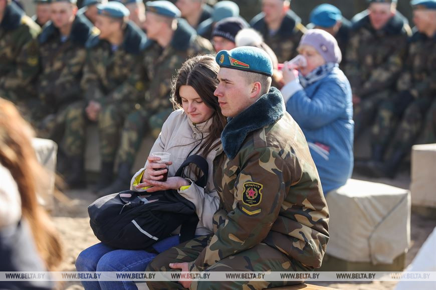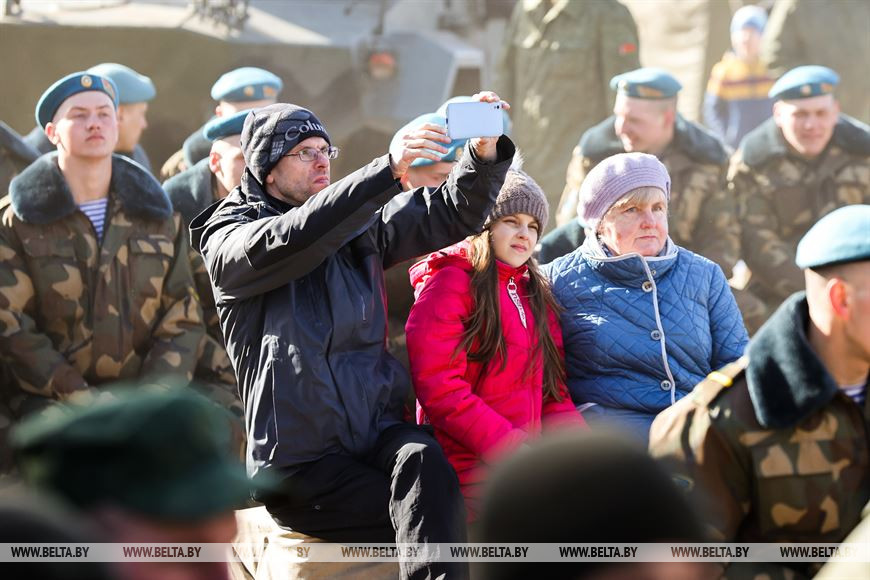 27 марта, Брест /Корр. БЕЛТА/. Мероприятие для родителей и друзей военнослужащих 38-й ОДШБ проходит не первый год и уже стало доброй традицией. В этом году гостей ждали насыщенная концертная программа, угощения, а также знакомство с укладом жизни солдат в полевых условиях и образцами военной техники. -0-