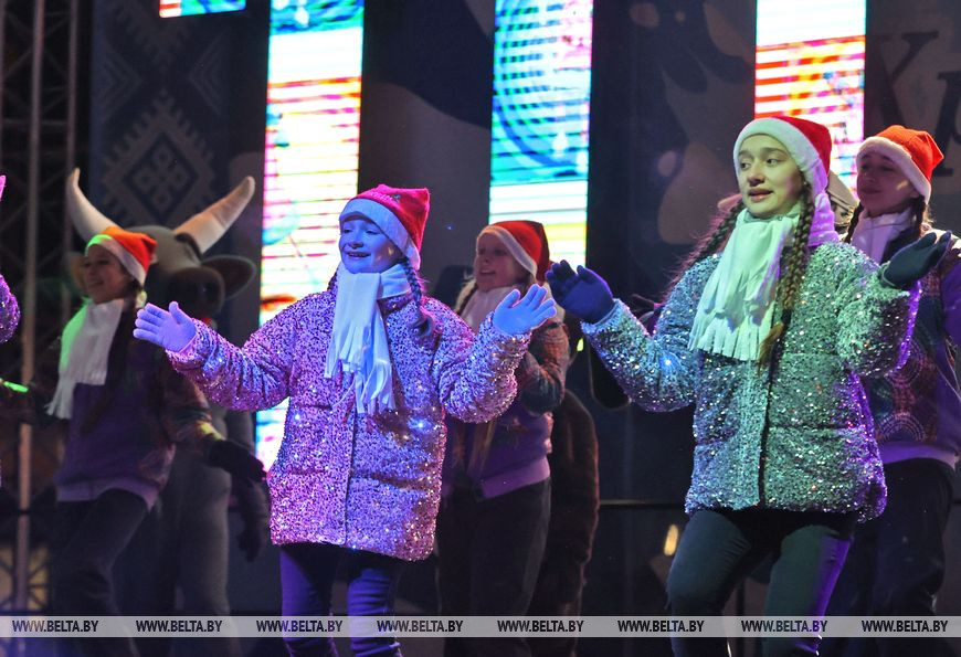 23 декабря, Витебск /Корр. БЕЛТА/. В Витебске засияли огни на главной елке областного центра. На площади Победы был дан старт общегородской акции "Зажжем елку вместе!". Праздничное представление прошло с участием Дедов Морозов и Снегурочек, сказочных персонажей.-0-
