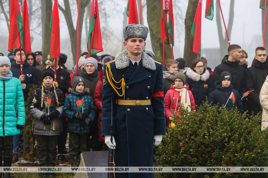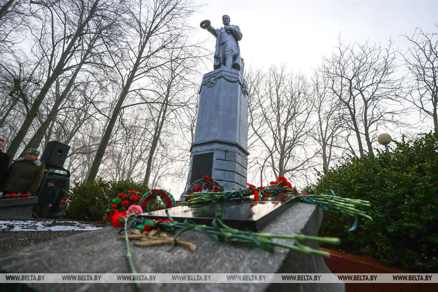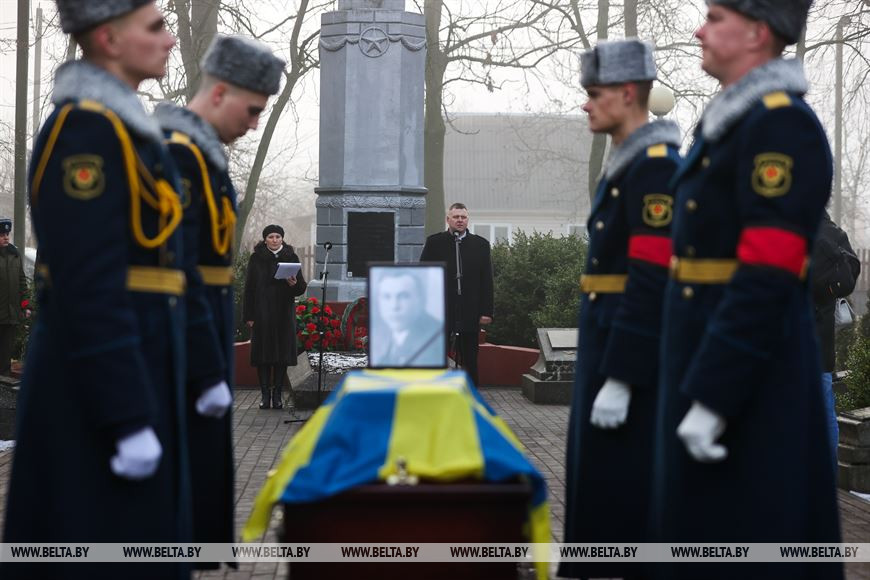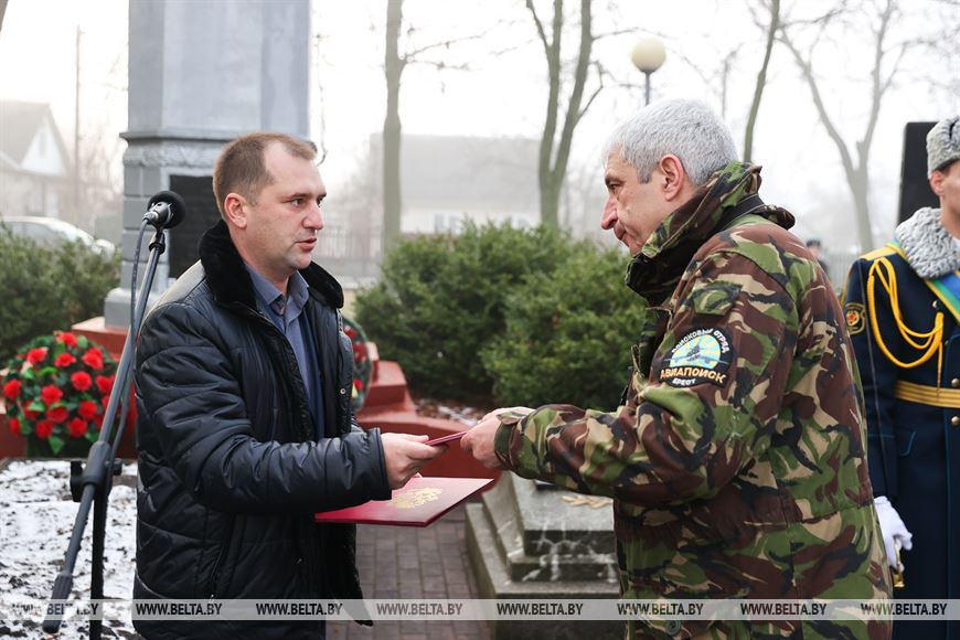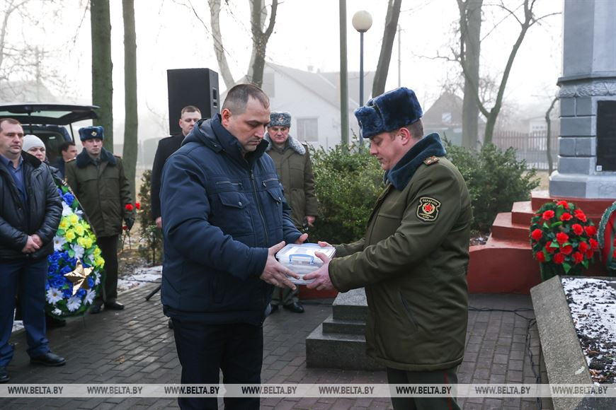 11 декабря, Брест /Корр. БЕЛТА/. 11 декабря в сквере им.Пуганова в Кобрине Брестской области состоялась церемония передачи на родину останков летчика Великой Отечественной войны Петра Шмыгова.