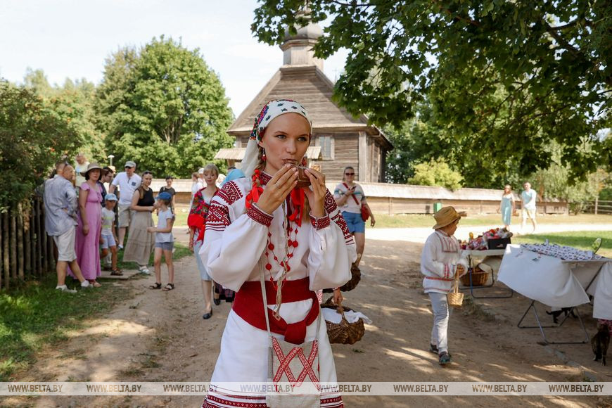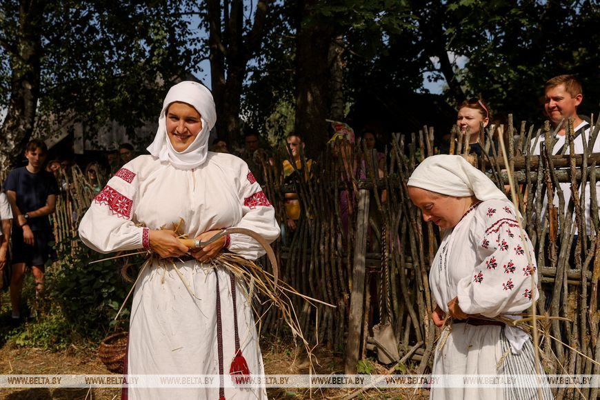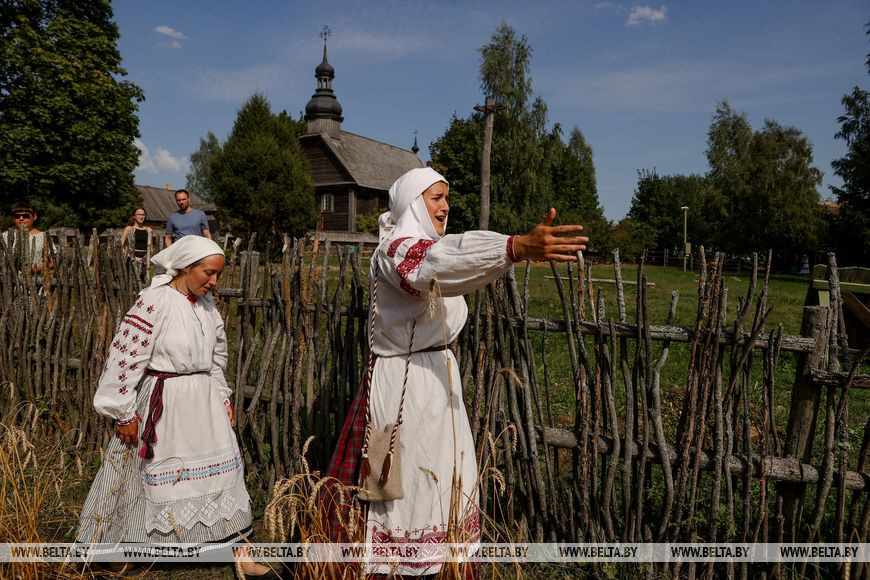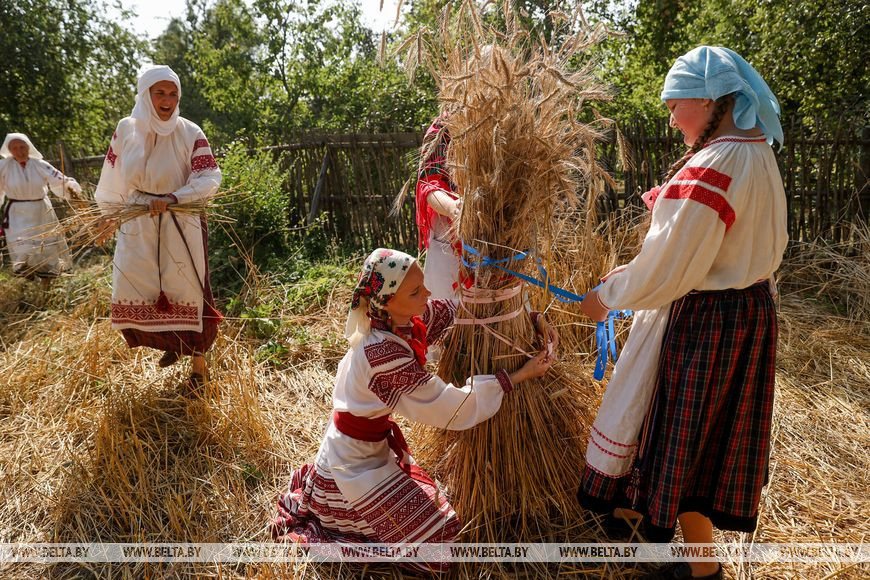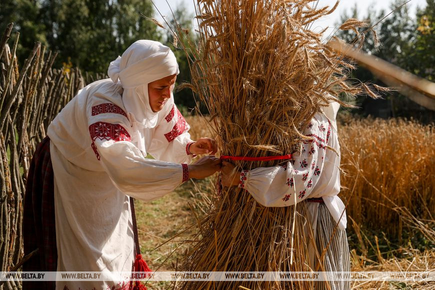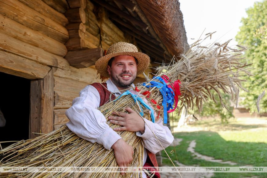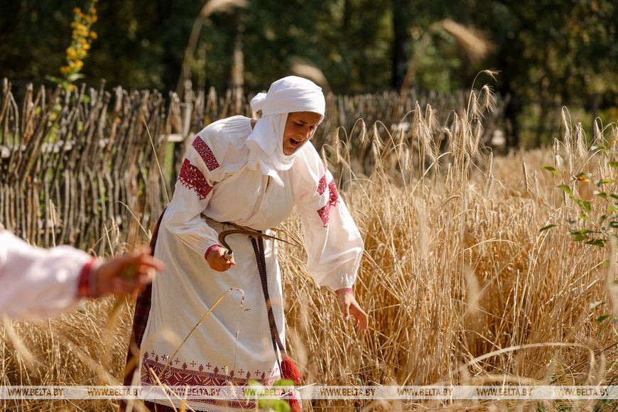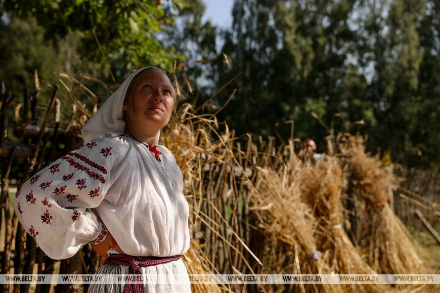 27 августа, Минск /Корр. БЕЛТА/. В Белорусском государственном музее народной архитектуры и быта прошел праздник окончания сбора урожая "Дажынкi", сообщает БЕЛТА. Сбор урожая в Беларуси издавна проходит торжественно и празднично - это кульминация рабочего года крестьянина. Обязательными атрибутами праздника в старину являлись последний сноп и венок, которые дарили хозяину дома. В музее во время праздника посетителям показали реконструкцию обряда "Дажынкi".-0-