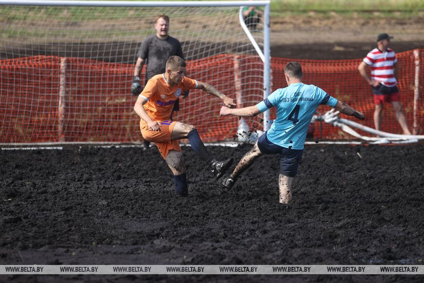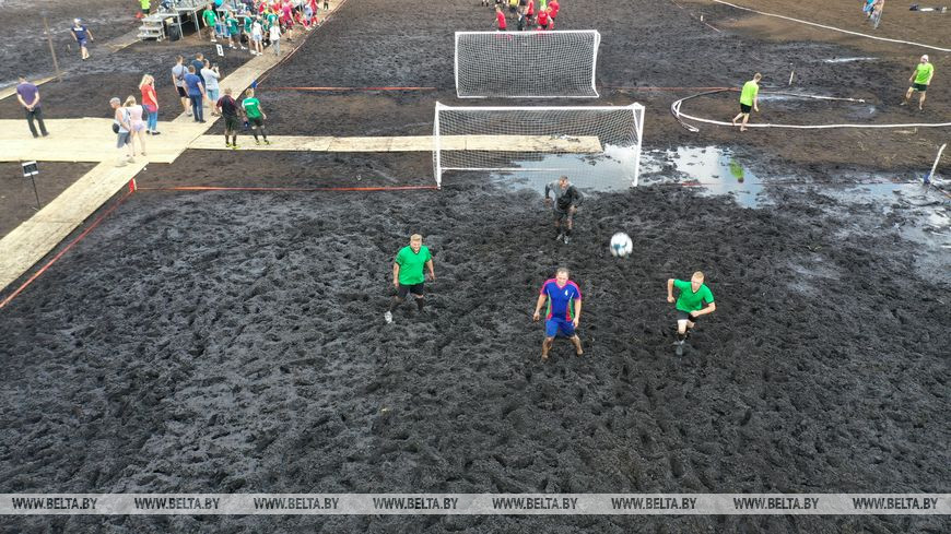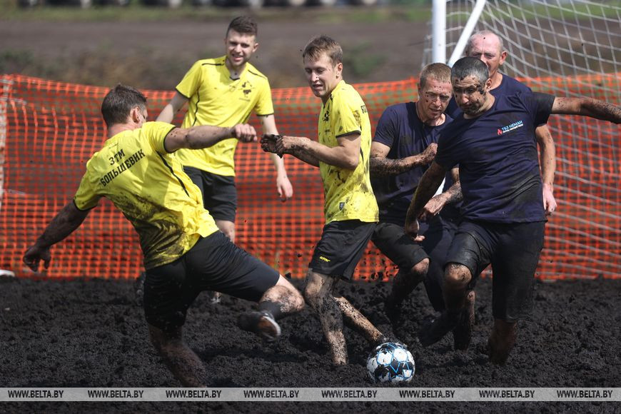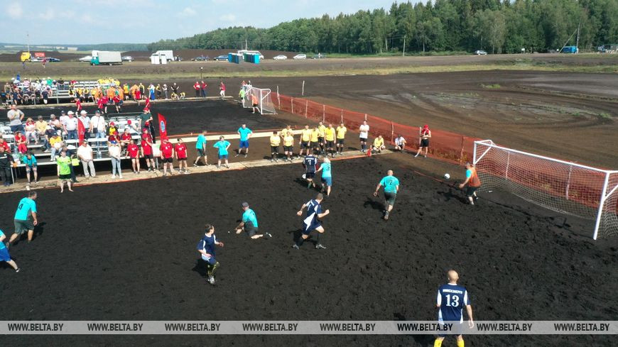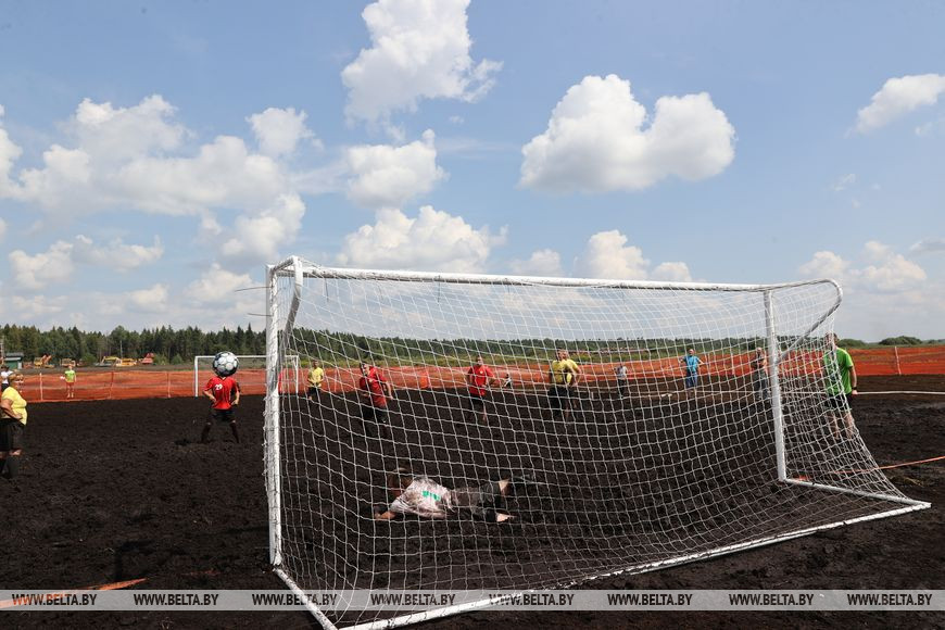 6 августа, Пуховичский район /Корр. БЕЛТА/. 6 августа на участке торфяного месторождения Гала-Ковалевское торфобрикетного завода "Сергеевичское" УП "Мингаз" прошло зрелищное спортивное мероприятие - IV Республиканский турнир по торфяному (болотному) футболу среди организаций газовой, торфяной и энергетической отраслей, а также предприятий цементной промышленности.-0-