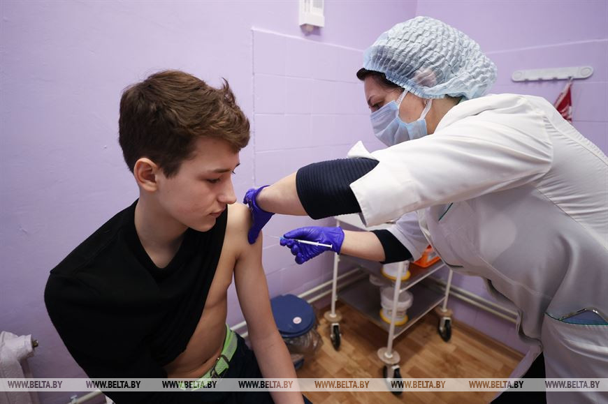 19 января, Солигорск /Корр. БЕЛТА/. Солигорская центральная районная больница проводит вакцинацию детей против инфекции COVID-19 в школах. Прививают подростков в возрасте от 12 до 17 лет. Главное условие - наличие письменного согласия родителей или законных представителей. Для вакцинации детей применяется китайская вакцина VeroCell.-0-