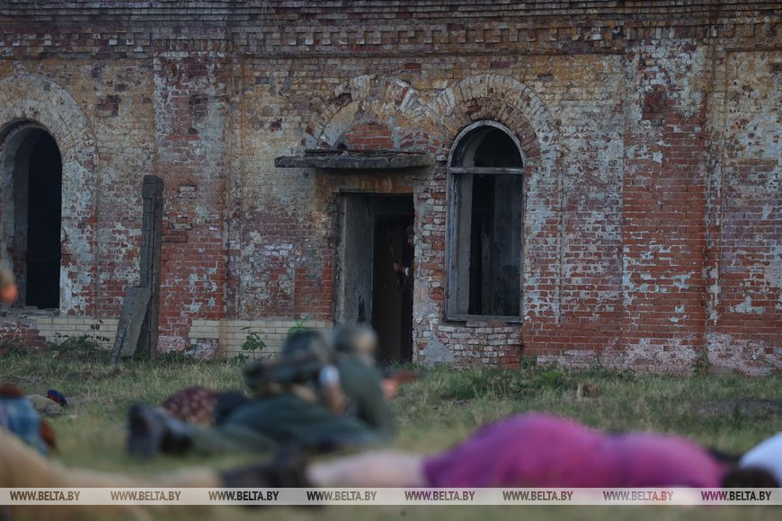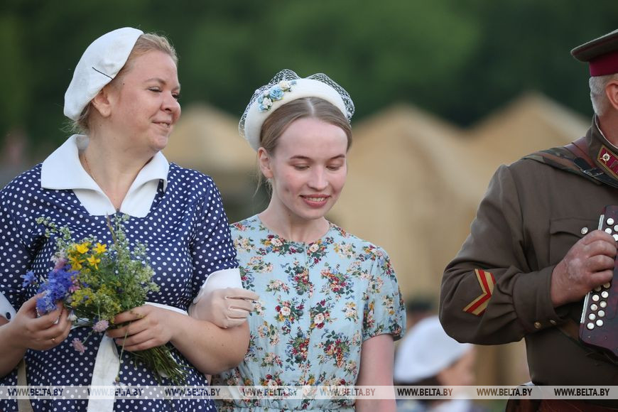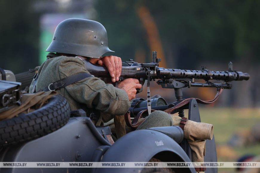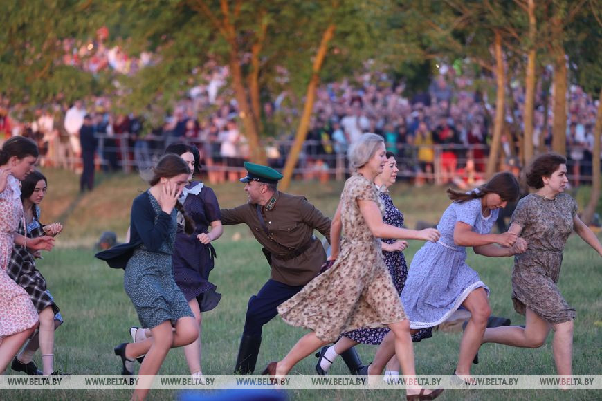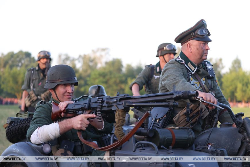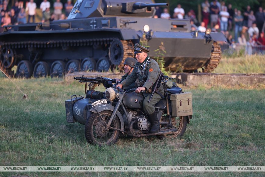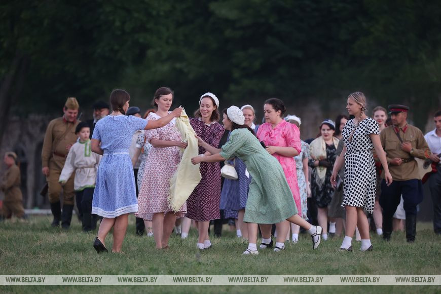 22 июня, Минск /Корр. БЕЛТА/. Военно-историческая реконструкция "22 июня. Брестская крепость", посвященная Дню всенародной памяти жертв Великой Отечественной войны и 80-летию героической обороны Брестской крепости, собрала в мемориальном комплексе тысячи зрителей. В юбилейном Х фестивале участвуют более 300 реконструкторов из Беларуси, России, Украины, стран Балтии. В постановке также задействована техника - танк, бронетранспортер, грузовики, мотоциклы. Что-то своим ходом пригнали сами энтузиасты. Тяжелую технику предоставил "Беларусьфильм", оружие и боеприпасы - Министерство обороны. -0-