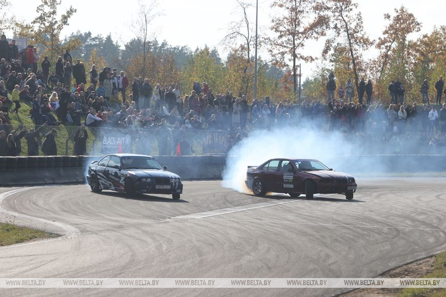 10 октября, Минск /Корр. БЕЛТА/. Финал соревнований по дрифту класса Pro2 прошел 10 октября на кольцевой трассе в "Стайках" (д. Прилесье). Зрители смогли увидеть состязание между шестью командами, а также лучшими из 50 пилотов, принявших участие в чемпионате этого года. Впервые в истории Pro2 лига получила возможность провести соревнования на PRO-трассе (картодроме).-0-