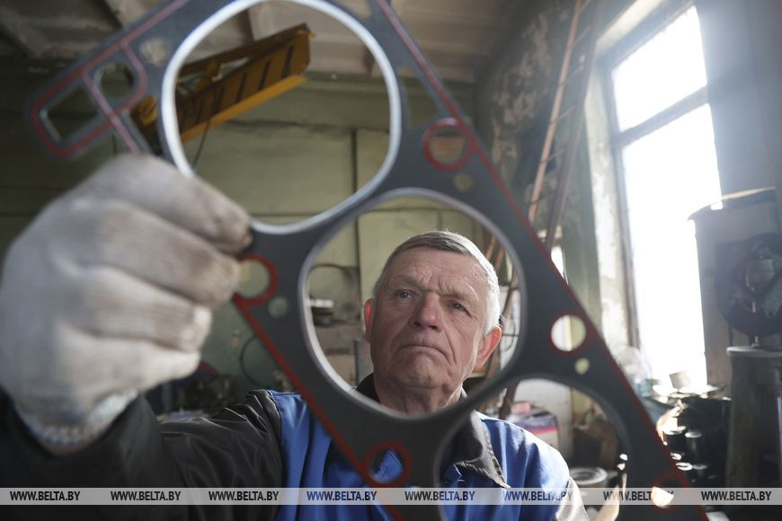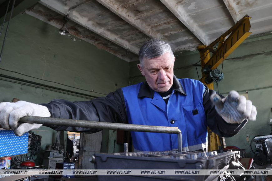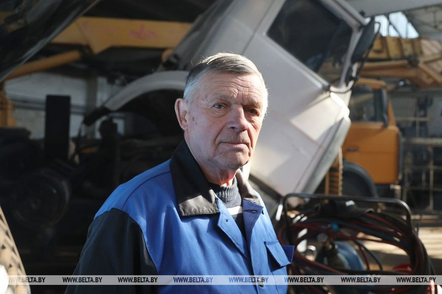 Виктор Парамонов - слесарь по ремонту автомобилей шестого разряда структурного подразделения УМ-120 ОАО "Строительный трест №12" в Могилеве. Специалист пришел на работу в организацию в далеком 1966 году. И вот уже почти 60 лет добросовестно и исправно трудится на благо родного предприятия. Руководство и коллеги уверены: нет такой задачи, которая была бы не под силу этому 76-летнему аксакалу. К Виктору Ивановичу всегда идут как за профессиональным, так и за жизненным советом. А он в свою очередь охотно делится накопленными годами опытом и знаниями. "Гайки крутить умею и других научу!" - подшучивает наш герой. Корреспонденты БЕЛТА побывали в гостях у старожила могилевской строительной организации, чтобы узнать о его трудовом пути и увлечениях.
