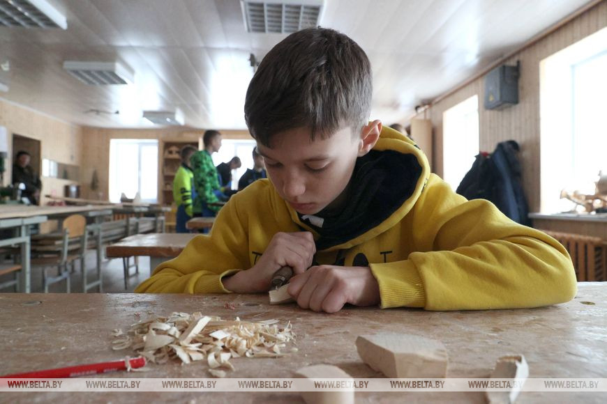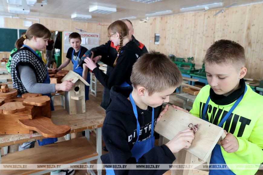 Средняя школа в агрогородке Тетерино Круглянского района даже во время весенних каникул остается центром притяжения для детей. Для них, как и каждый год, здесь организован школьный лагерь. Педагоги и администрация школы всегда творчески подходят к мероприятиям, которыми наполнена неделя весенних каникул. Спортивные занятия, творческие задания, работа в мастерской, помощь в подготовке школы к новой учебной четверти - все это для ребят только в радость. Корреспонденты БЕЛТА отправились в Тетеринскую среднюю школу, чтобы узнать, почему школьники предпочитают проводить свой отдых в школе и чем наполнены их будни во время каникул.