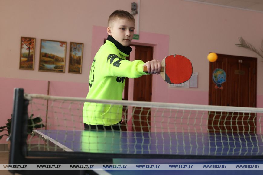 Пока старшеклассники трудятся, в холле в настольный теннис играет Даниил Тишков. Мальчику 11 лет, он учится в средней школе в Круглом, а на весенние каникулы приехал к бабушке в Тетерино. "Я сам в этот школьный лагерь попросился. Уже не первый раз, - улыбается мальчик. - Мне очень нравится школа, занятия, которые у нас проходят. Мы и в настольный теннис играем, и в волейбол, и рисуем. И ребят много. Тут намного интереснее проводить каникулы".