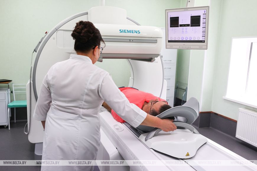 Новейший аппарат 2021 года выпуска установлен в лаборатории радионуклидной диагностики. От своего предшественника, который отработал здесь более 10 лет, он отличается расширенными функциями и техническими возможностями. "В отличие от других компьютерных, магнитно-резонансных томографов, которые занимаются изучением анатомических структур либо топографо-анатомических отклонений, этот аппарат изучает функцию органа: то есть как работают почки, щитовидная железа, сердце. В этом его уникальность", - отметил главный врач Брестской областной клинической больницы Александр Карпицкий.