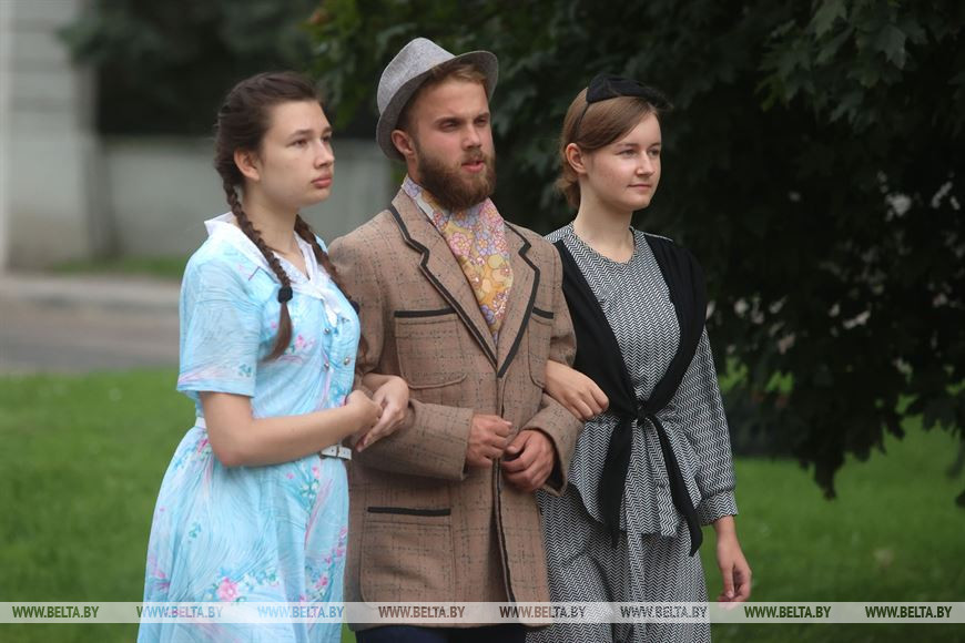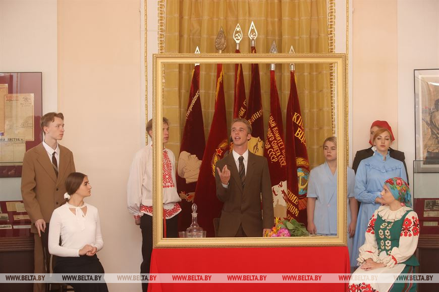 Во время телемоста начала работу выставка "Ты з Заходняй, я з Усходняй нашай Беларусі...". Старт ее прошел в интерактивном формате. Работала фотозона "Живая картина", гуляли горожане в костюмах той эпохи, можно было почитать тематическую литературу или нарисовать боевой листок. На самой выставке представили уникальные фотографии, документы, одежду, элементы военного обмундирования, плакаты того времени.-0-