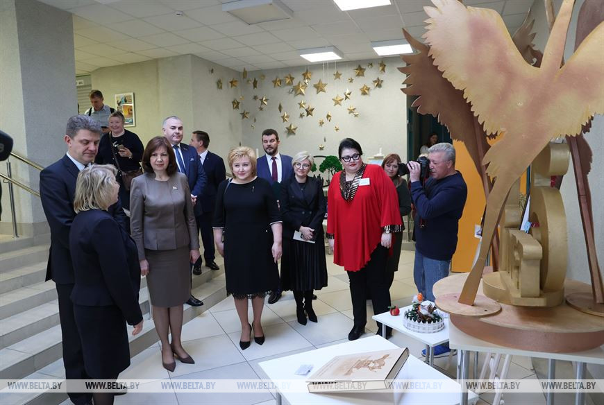 На площадке перед входом в Центр дополнительного образования детей и молодежи "Ранак" установлена тематическая фотозона, в фойе можно ознакомиться с выставкой творческих работ учреждений образования.