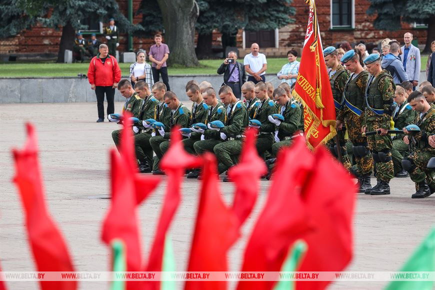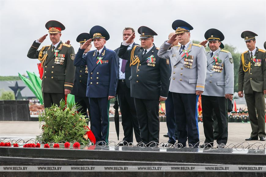 С утра, несмотря на дождливую погоду, многолюдно было в Брестской крепости. Представители руководства области и города, общественных организаций, депутатского и дипломатического корпусов, силового блока, духовенства возложили цветы к Вечному огню мемориала, минутой молчания почтили память защитников. Часом ранее такая же церемония состоялась на площади Свободы, где установлен памятник "Освобождение" в честь 47 воинских частей и соединений, освобождавших Брест от немецко-фашистских захватчиков в июле 1944 года.