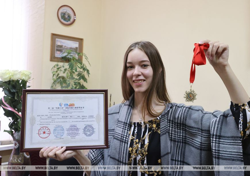 19 сентября, Витебск /Алеся Пушнякова - БЕЛТА/. Международный конкурс профмастерства "Шелковый путь", который был организован в Шанхае и проходил дистанционно, принес мастеру производственного обучения Витебского государственного индустриального колледжа Алене Полесовой золотую медаль. Девушка рассказала корреспондентам БЕЛТА, какой неожиданностью для нее стала победа.