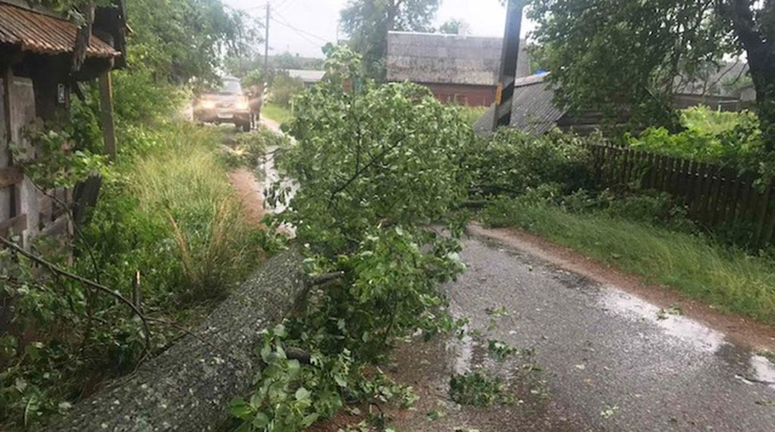 "12 июня из-за выпадения обильных осадков и сильного ветра порывами до 20 м/с сотрудникам МЧС Гродненской области поступило 25 сообщений о падении деревьев на проезжую часть. Инциденты были на дорогах в Берестовицком, Гродненском, Новогрудском, Мостовском, Щучинском, Ошмянском, Свислочском и Ивьевском районах. В Зельвенском районе дерево упало во дворе частного жилого дома. В Гродно спасатели трижды оказывали помощь по распиловке и уборке поваленных деревьев. На улице Санаторной в Гродно дерево повредило стоявший рядом припаркованный автомобиль. В этих происшествиях пострадавших нет", - рассказали в МЧС.-0-