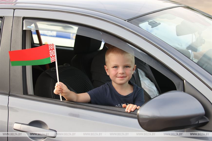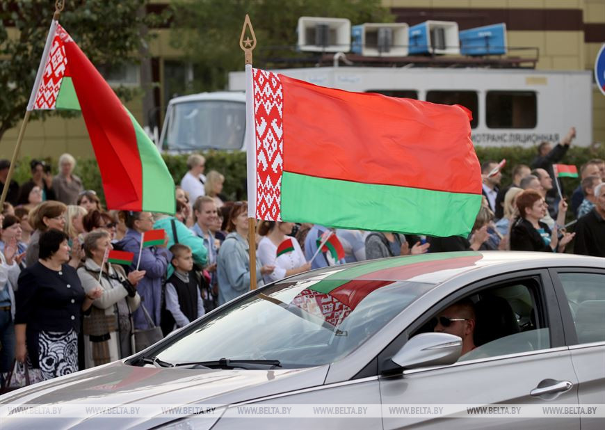 Одними из первых по новой трассе проехали участники автопробега "За Беларусь!".-0-
