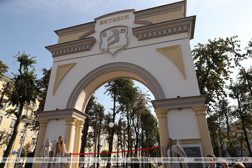 26 сентября, Витебск /Корр. БЕЛТА/. В Витебске после реконструкции открыли сквер имени Кирова с входной аркой и новой скульптурой, передает корреспондент БЕЛТА.