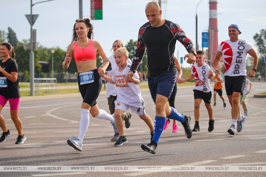 Стартовый и финишный городок разместился по соседству с главным входом в мемориальный комплекс "Брестская крепость-герой". Для участников провели коллективную разминку. Первыми на старт вышли самые маленькие любители спорта: около 150 детей зарегистрировались в семейном забеге, который они пробежали в партнерстве с родителями. На финише ребята получили заслуженные медали, также организаторы побаловали их угощениями.