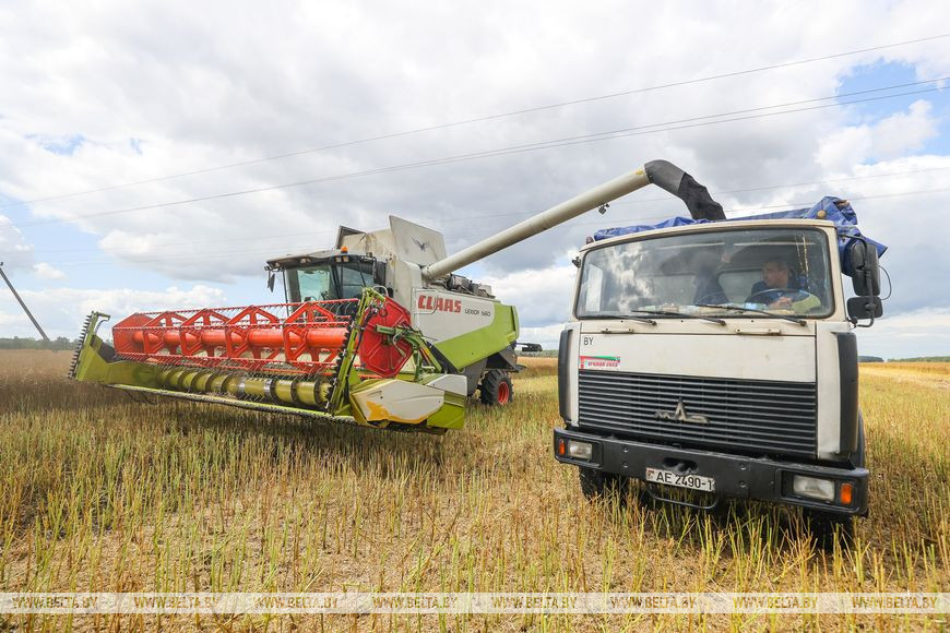 "Уборочная кампания во всех районах началась оперативно. В этом году все культуры созрели практически одномоментно. Массово вышли в поля комбайны. Единичные случаи были, когда техника где-то еще ремонтировалась. Быстро был убран озимый ячмень, площади которого мы расширили в два раза, намолотили 96 тыс. т зерна. В этом году тоже расширим его площади - примерно на 15-20%. Нас радует, что несмотря на то, что примерно 12 тыс. га посевов зерновых было списано или убрано на сенаж, урожайность на 2 ц выше прошлогодней. Что касается рапса, то есть хозяйства, где более 50 ц на круг получают. Мы научились выращивать эту культуру. Надеюсь, повторим прошлый год, а, может, и превысим", - прокомментировал текущую ситуацию на полях первый заместитель председателя Брестского облисполкома Валентин Зайчук.-0-