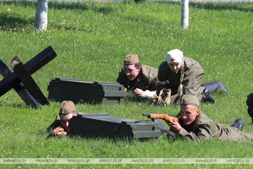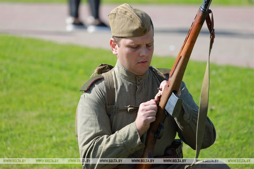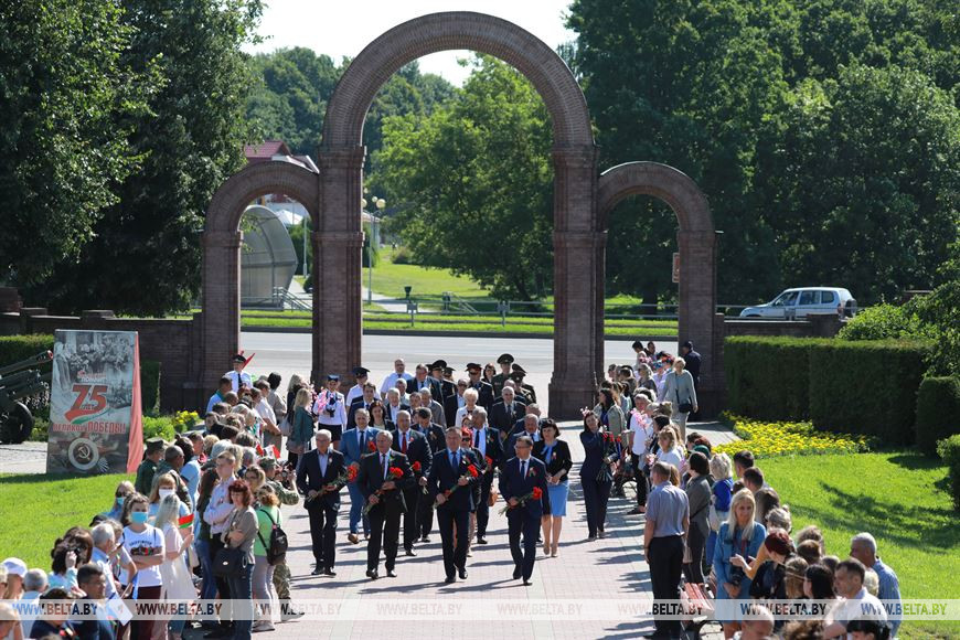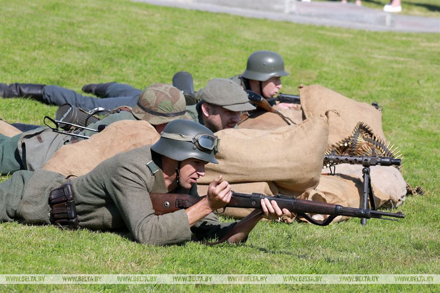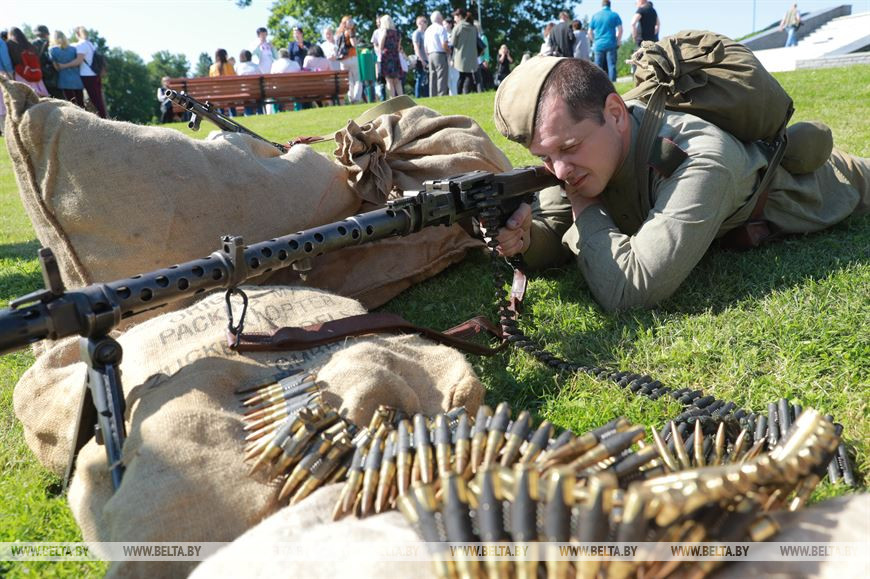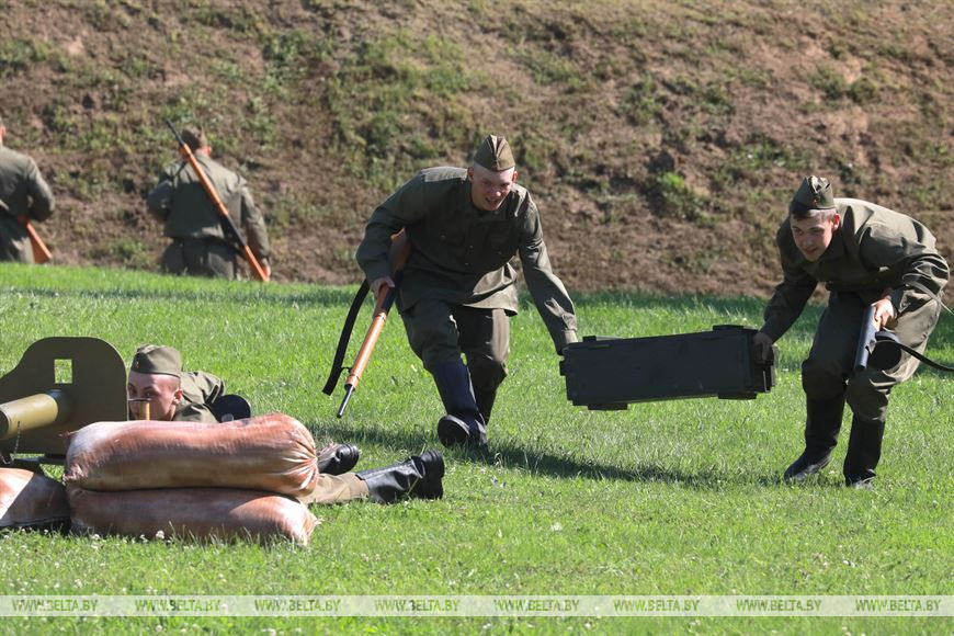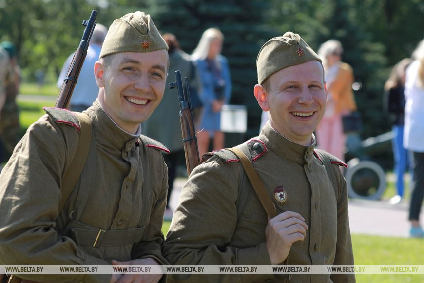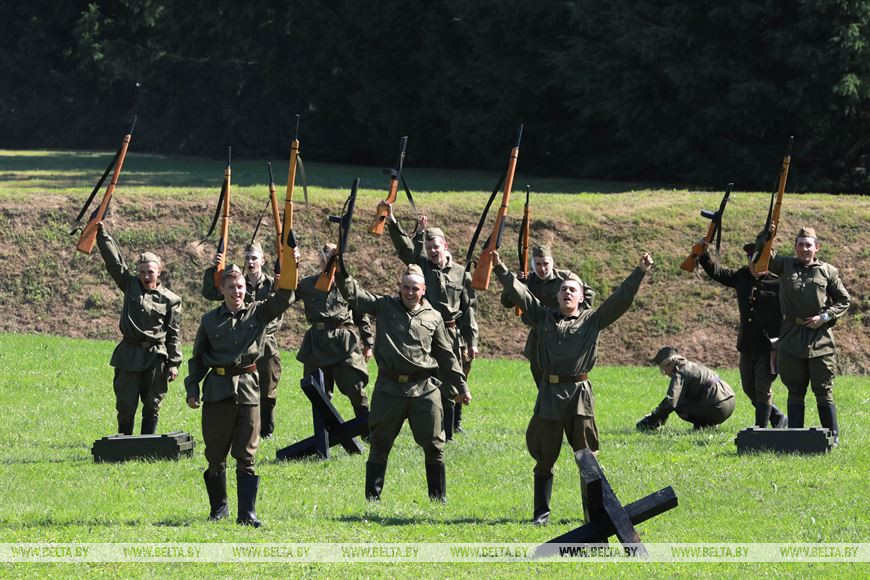 Торжественное мероприятие было приурочено к 75-летию Великой Победы. Участники возложили цветы и венки к каплице, почтили память погибших минутой молчания. После этого на Буйничском поле прошла театрализованная реконструкция освобождения Могилева.-0-