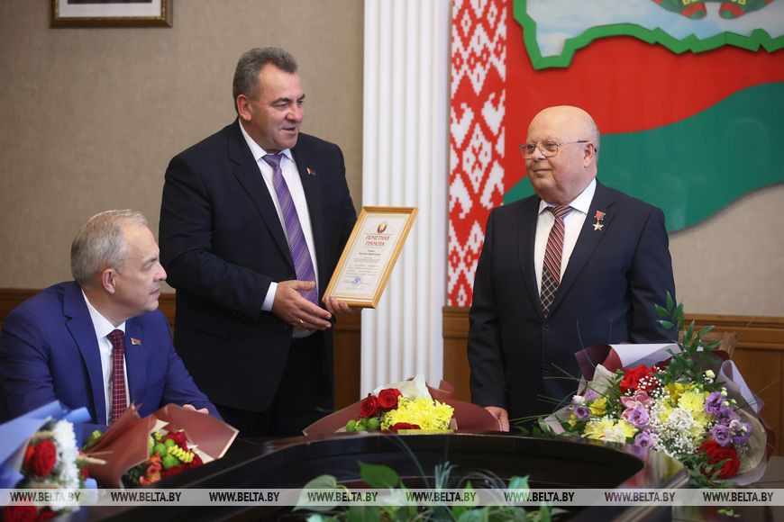 От имени председателя Совета Республики Национального собрания Натальи Кочановой поздравил Василия Ревяко председатель Гродненского областного объединения профсоюзов, член Совета Республики Виктор Лискович.