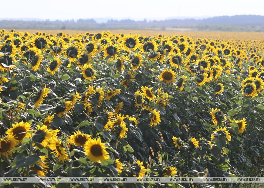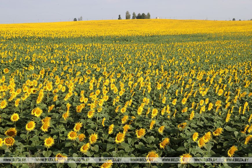 Всего в районе три хозяйства решились на солнечный эксперимент. Некоторые несколько лет ранее. К слову, в ОАО "Отор" уже сейчас зреют подсолнечники на 100 га. Сельскохозяйственные наделы - как с картинки.