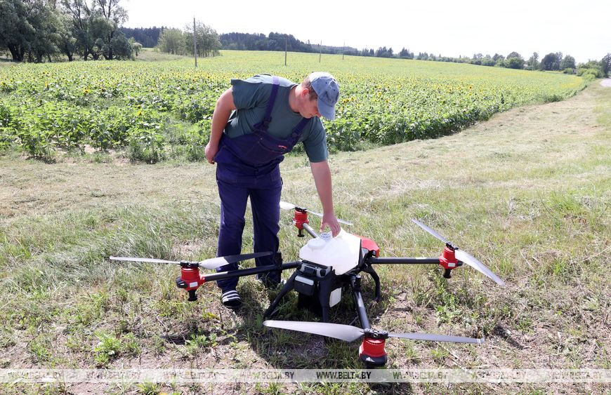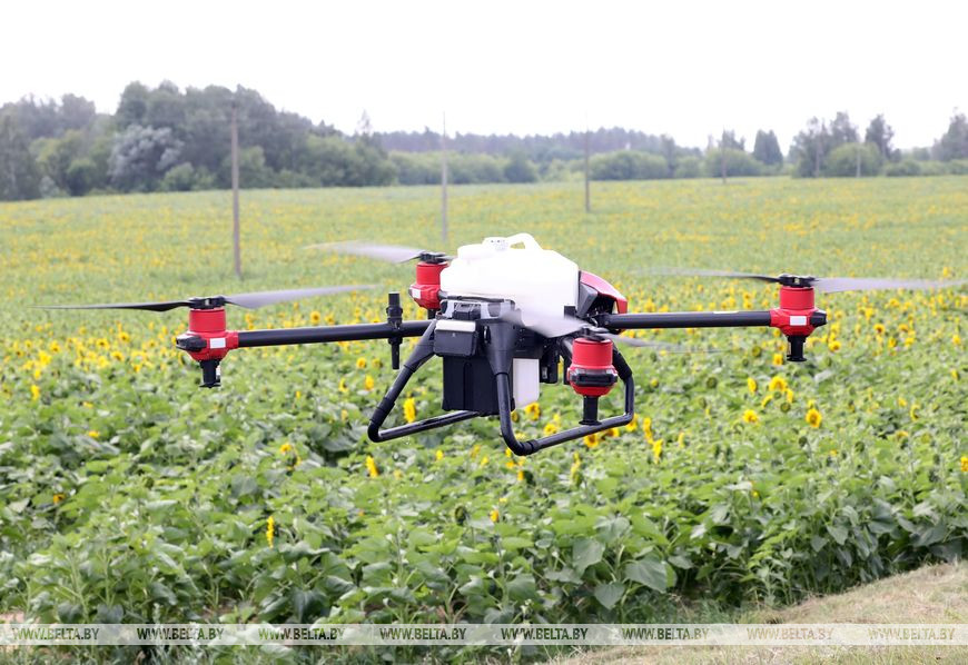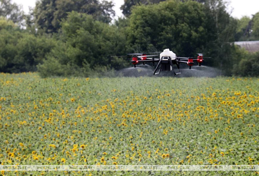 При оптимальных погодных условиях квадрокоптер проходит 3 га за 10 минут. В идеальную погоду скорость дрона достигает 12 м/с. Немаловажная опция - возможность работы в темное время. Эту функцию как раз использовали для обработки подсолнечников.