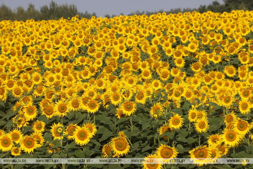 Природные краски рисуют на холмистой местности Чечерского района живописные пейзажи. Насыщенной охрой выделяются гектары с подсолнечниками среди зеленых массивов лесов, лугов и нежного золота хлебных нив. Жаркий климат, готовность и хозяйственный азарт аграриев плюс выдержка технологии позволяют получить хороший урожай этой солнечной культуры. Корреспонденты БЕЛТА побывали на плантациях с тысячами солнц в миниатюре и узнали из первых уст, как приживается подсолнечник в наших широтах.