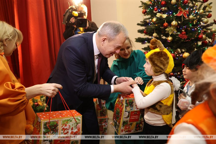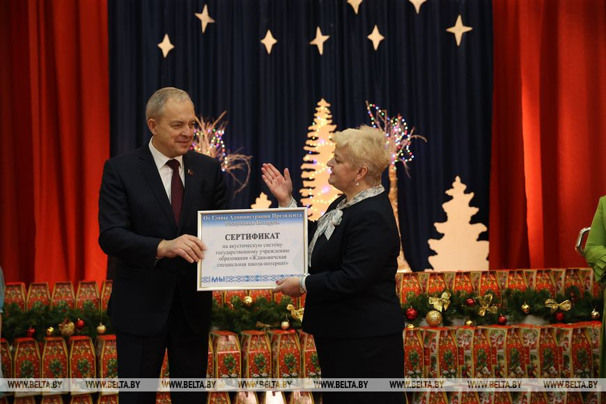 "Принимаю сегодня участие в прекрасной акции "Наши дети". В эти праздничные зимние дни многие руководители, трудовые и творческие коллективы, небезразличные люди приезжают в школы и дома-интернаты, чтобы поздравить детей, которые не всегда могут в полной мере испытывать внимание близких и домашнюю ласку. В учреждении в Ждановичах увидел, что педагоги здесь с любовью создают учащимся волшебную новогоднюю атмосферу. Здесь работают небезразличные люди, серьезные педагоги с хорошей квалификацией", - сказал Игорь Сергеенко.
