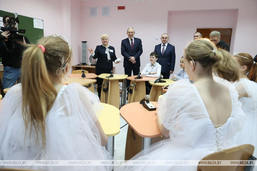 Руководитель и педагоги школы-интерната организовали для Игоря Сергеенко и других гостей экскурсию по учреждению, показав учебные классы и кабинет коррекционной работы, где логопед проводит с детьми занятия по развитию речевого слуха и обучению произношению. Также гостям показали художественную мастерскую "Фарбы". За время работы изостудии картины детей были представлены на площадках библиотеки Янки Купалы, художественной галереи "Университет культуры" во Дворце Республики, а также на выставках в Национальной библиотеке.