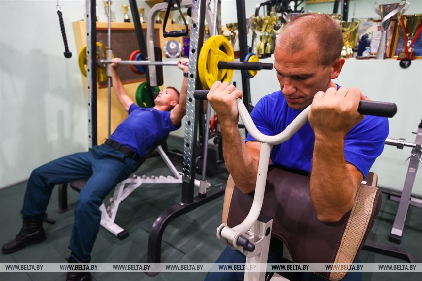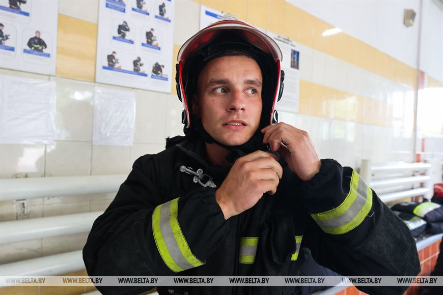 Никита Цедрик работает мастером связи. Занимается обеспечением связи между своим подразделением и центром оперативного управления в Бресте, проводит техническое обслуживание средств связи - внутренних телефонов, переносных и стационарных радиостанций. Естественно, наравне с коллегами участвует в ликвидации чрезвычайных ситуаций, однако физической подготовке уделяет больше внимания. После окончания дежурных суток едет домой и уже тренируется сам: бегает кросс, плавает, выполняет комплексное силовое упражнение на перекладине. На территории отряда проходят тренировки в полной экипировке. В таком случае к собственному весу добавляется еще около 30 кг. Еще сложнее приходится, когда на улице стоит жара.
