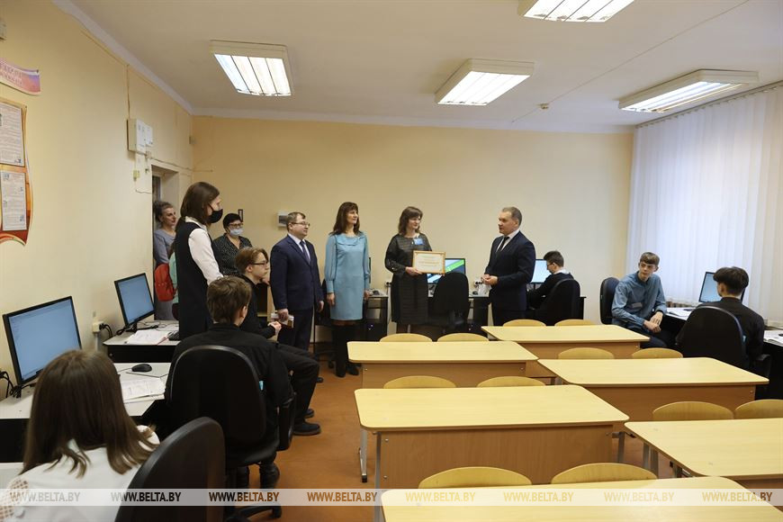 Переоснащение компьютерных классов назрело давно: в школе их два, пока обновился один. Сертификат на комплекты компьютеров директору школы Ольге Розновской вручил глава администрации Октябрьского района Витебска Юрий Панфилов. "Современные технологии в образовании очень важны, так как они позволяют выпускникам легко ориентироваться в быстро меняющемся цифровом мире", - подчеркнул Юрий Панфилов.