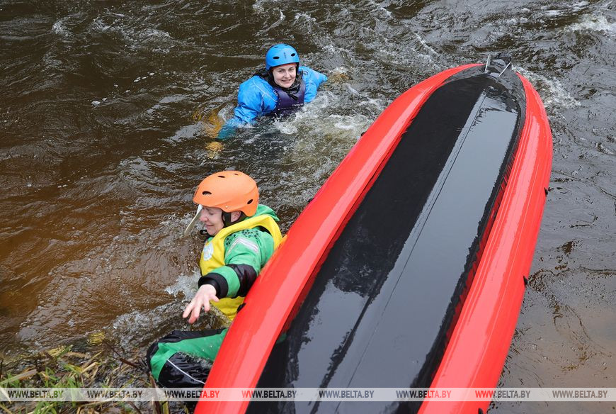 Впечатлениями после прохождения трассы делятся лидские девчонки. "Очень понравилось, вода прекрасная и люди тоже. Все думали, что мы перевернемся на первых воротах, а мы просто в них не вошли", - смеясь рассказывают Лиана Павловская и Ульяна Никищенко. Девушки занимаются пешеходной техникой туризма уже в течение 6-7 лет, на воде - только год-два, поэтому стараются использовать каждый момент, чтобы попрактиковаться.