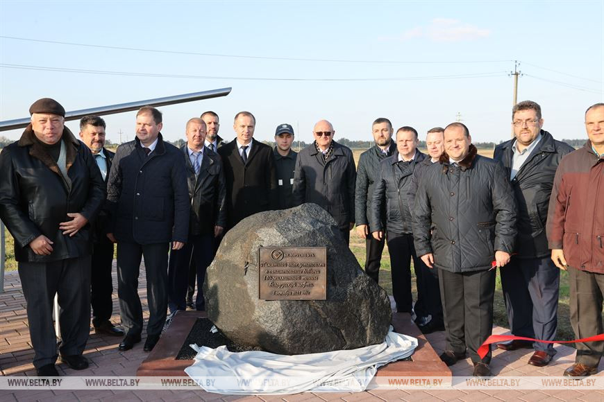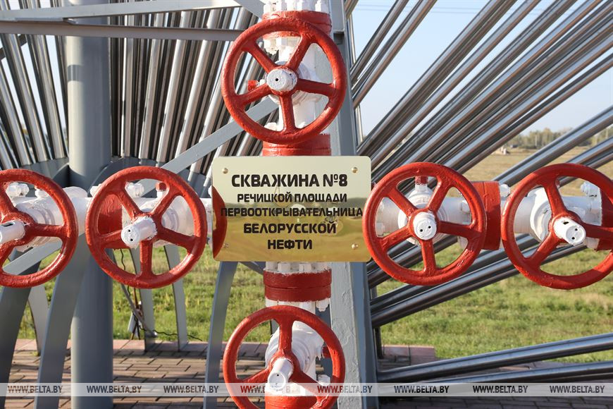 Историческое событие запечатлели и в камне. Памятный знак открыли у стелы первооткрывателям белорусской нефти. "Это место можно назвать "паломническим" для всех нефтяников Беларуси. Сюда мы привозим студентов, затем молодых специалистов. И каждый уважающий себя нефтяник приезжает на это место, где начала развиваться нефтяная промышленность Беларуси. Здесь находилась скважина №8, где был получен первый промышленный приток нефти, с которого начинается историческая летопись развития. Здесь же, на Речицком месторождении, мы имеем основные объемы добычи, формирующие до 30% всей добычи компанией "Белоруснефть", - подчеркнул главный инженер - заместитель генерального директора ПО "Белоруснефть" Антон Серебренников.