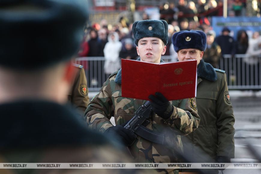 20 ноября, Минск /Корр. БЕЛТА/. В соединениях и воинских частях Вооруженных Сил Беларуси прошли торжественные мероприятия, посвященные принятию военной присяги новым пополнением, сообщили БЕЛТА в пресс-службе Министерства обороны.
