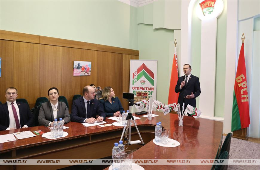 Символическим стартом акции стало совместное исполнение участниками онлайн-диалога государственного гимна и вручение каждому делегату на Всебелорусское народное собрание от БРСМ - Государственного флага Беларуси.
