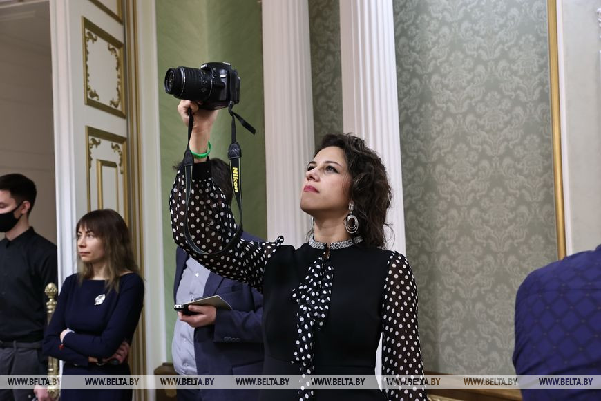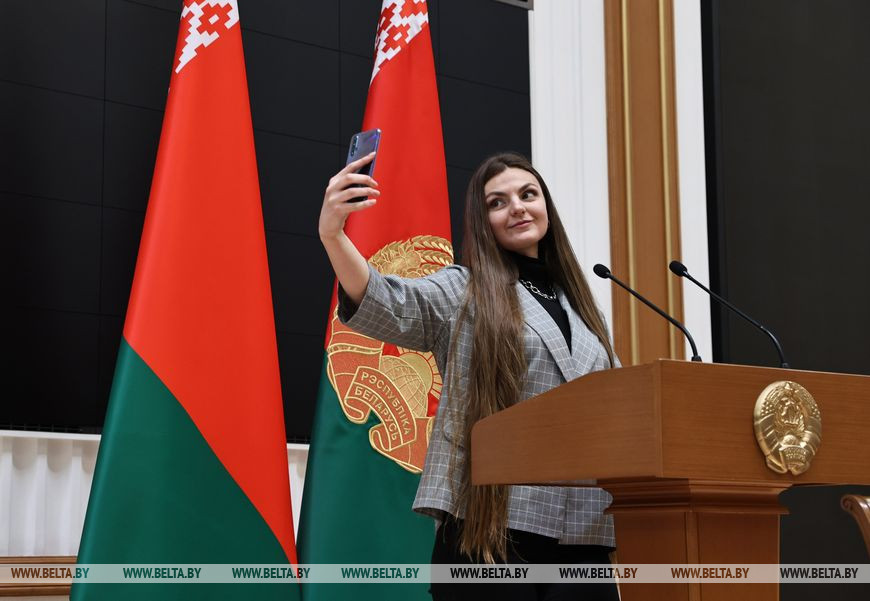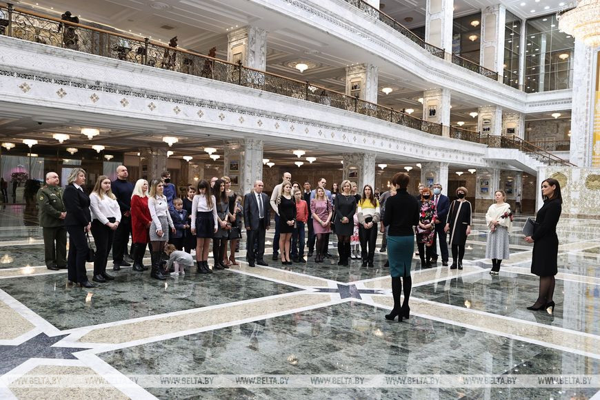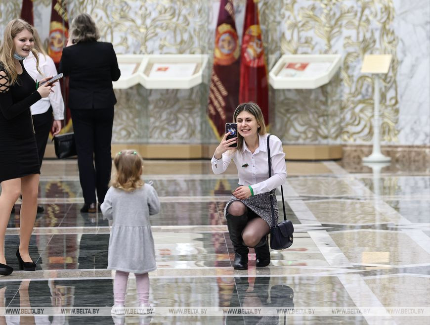 Патриотов, приехавших специально ради этого события из различных регионов страны, во Дворце Независимости приветствовала пресс-секретарь Президента Беларуси Наталья Эйсмонт. Она рассказала, что Александр Лукашенко не любит называть дворец своей рабочей резиденцией, хоть в его залах практически ежедневно проходят важные для страны совещания и встречи, принимают зарубежных гостей, проводят международные форумы. Поэтому несколько лет назад по инициативе главы государства было принято решение открыть здание для рядовых граждан - проводить туда всех желающих и организовывать экскурсии, сделать Дворец Независимости действительно народным.