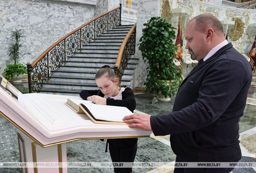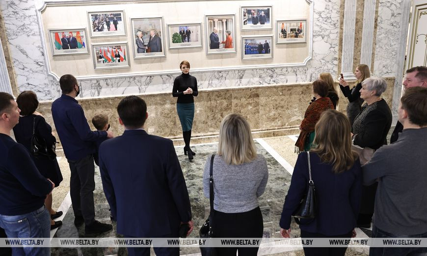25 января, Минск /Корр. БЕЛТА/. Во Дворце Независимости сегодня вновь прошли экскурсии для тех, кто не словом, а делом доказал свою приверженность идеям мирной, единой и независимой Беларуси. Символ белорусской государственности и суверенитета открыл свои двери для участников автопробегов "За единую Беларусь!", передает корреспондент БЕЛТА.