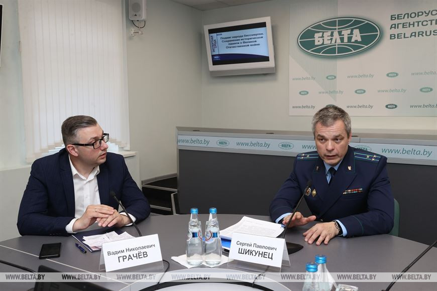 "В рамках расследования уголовного дела о геноциде белорусского народа в годы ВОВ помимо выполнения непосредственных следственных действий проводится серьезнейшая работа по сохранению исторической памяти и обеспечению идеологической преемственности поколений, - рассказал Сергей Шикунец.- По инициативе органов прокуратуры абсолютно в каждом районе нашей страны на базе краеведческих музеев (а если таковых нет, то на базе учреждений образования), в домах культуры создаются и в большинстве своем уже созданы исторические экспозиции, посвященные геноциду белорусского народа, как правило, на основании материалов уголовного дела, передаваемых нам. Это архивные документы, многие из которых вообще абсолютно не были известны общественности, которые рассекречены, из архивов КГБ в том числе, материалы архивных уголовных дел о злодеяниях, преступлениях, по которым люди привлечены к уголовной ответственности".