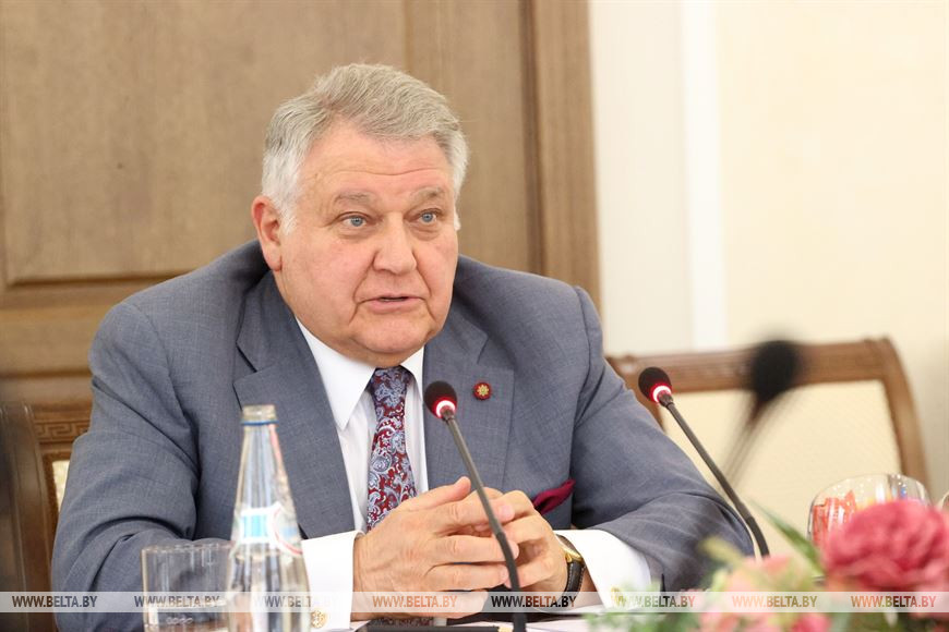 27 июля, Минск /Корр. БЕЛТА/. Синергия научного потенциала белорусских и российских ученых способствует движению вперед. Об этом заявил премьер-министр Беларуси Роман Головченко во время встречи с делегацией Национального исследовательского центра "Курчатовский институт" (Россия) под руководством президента НИЦ Михаила Ковальчука, передает корреспондент БЕЛТА.