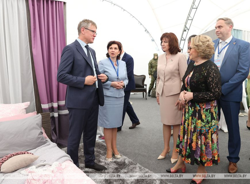 30 июня, Гродно /Корр. БЕЛТА/. Председатель Совета Республики Наталья Кочанова и председатель Совета Федерации Валентина Матвиенко приняли участие в торжественном открытии выставки крупногабаритной техники, промышленных образцов и ярмарки достижений народного хозяйства отраслей Республики Беларусь в Гродно, передает корреспондент БЕЛТА.