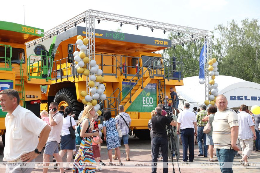 Кроме того, на выставке презентован гибридный карьерный самосвал БЕЛАЗ-7513-М. Он создан полностью из белорусских и российских комплектующих.-0-