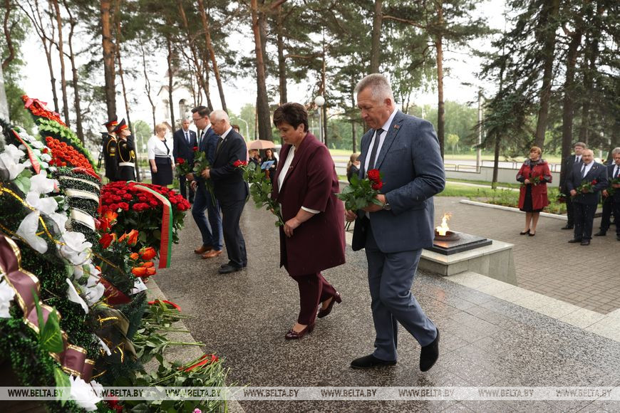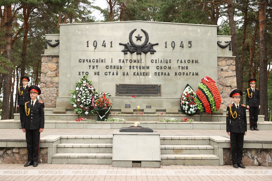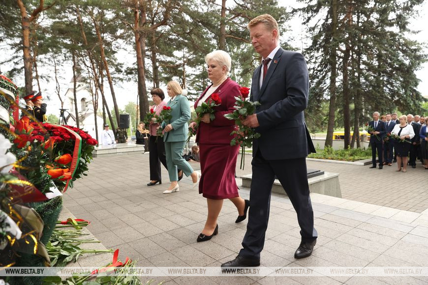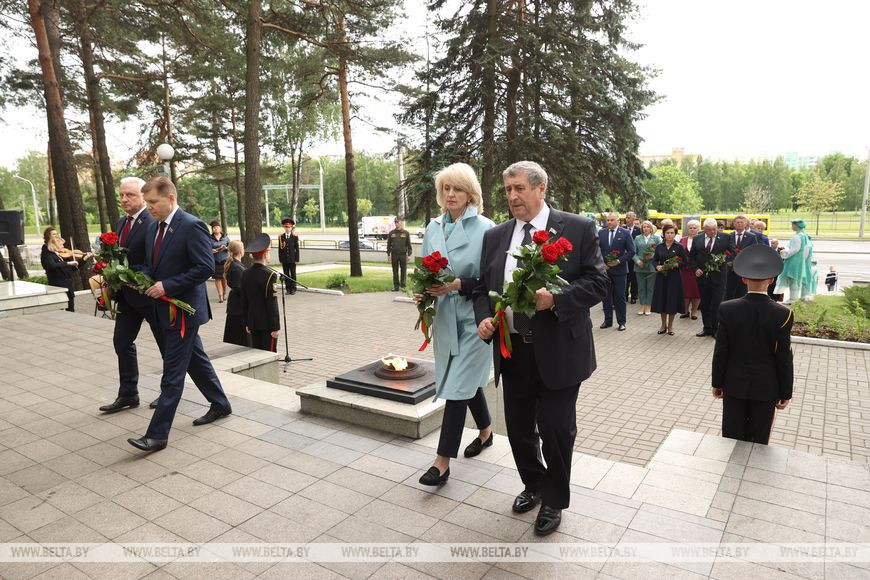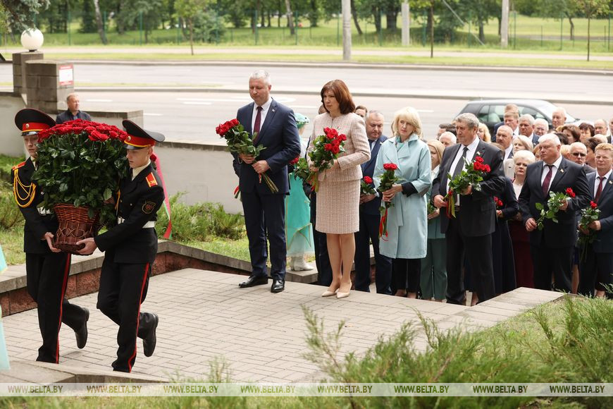 22 июня, Минск /Корр. БЕЛТА/. Председатель верхней палаты парламента Наталья Кочанова, члены Президиума Совета Республики, председатели областных, районных и сельских Советов депутатов сегодня, в День всенародной памяти жертв Великой Отечественной войны и геноцида белорусского народа, возложили цветы в мемориальном комплексе "Масюковщина", сообщает корреспондент БЕЛТА.