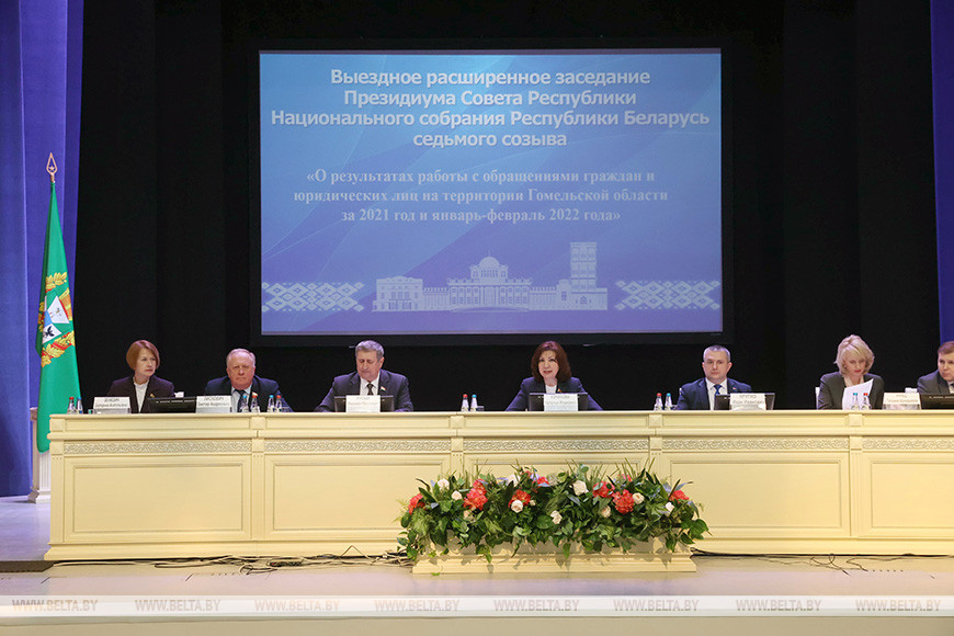 24 марта, Жлобин /Корр. БЕЛТА/. Важно прислушиваться и учитывать мнение людей в законотворческой деятельности. На этом акцентировала внимание председатель Совета Республики Наталья Кочанова на выездном расширенном заседании Президиума Совета Республики Национального собрания о результатах работы с обращениями граждан и юридических лиц за январь - февраль 2022 года, передает корреспондент БЕЛТА.