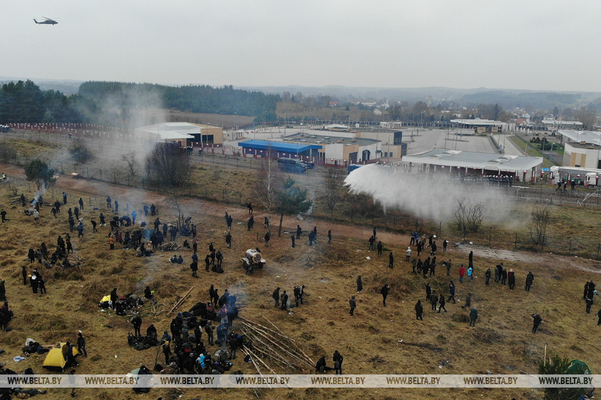 Как ранее сообщала БЕЛТА со ссылкой на ГПК, ситуация вблизи временного размещения беженцев в пункте пропуска "Брузги" у границы обострилась к полудню 16 ноября. Некоторые мужчины из числа иностранцев, доведенные до отчаяния от невыносимых условий, в которых пребывали они сами и их семьи в последние сутки, предприняли попытку прорваться на территорию Польши. Чтобы оттеснить мигрантов, польская сторона применила слезоточивый газ. Это еще больше разозлило беженцев, которые принялись забрасывать силовиков камнями, палками, всем, что попадалось под руку в критический момент, в том числе и обувью. В ответ польская сторона направила на безоружных беженцев струи водомета и применила светошумовые гранаты. Причем ледяная вода и разъедающий глаза газ попал на всех, кто находился на подступах границе, в том числе на женщин и детей. "Находиться в мокрой одежде при ноябрьских температурах, близких к нулю, и без того замерзающим и измотанным людям - это реальная угроза их жизни. Всю мощь польского отпора ощутили и журналисты, которые освещают ситуацию на месте событий на белорусской территории. Силовики Польши предпочитали не замечать заметную экипировку представителей СМИ и также направляли в них струи жидкости, которая разъедала глаза", - добавили в Госпогранкомитете.-0-