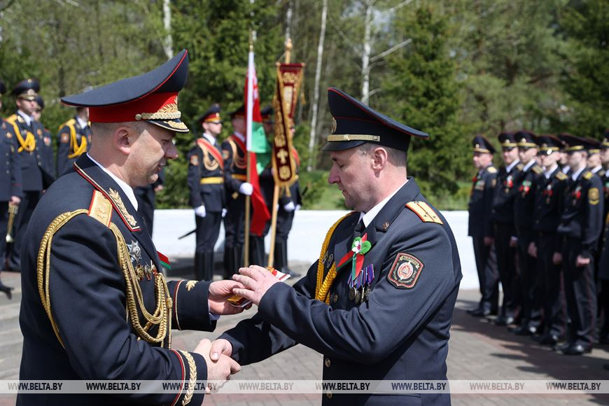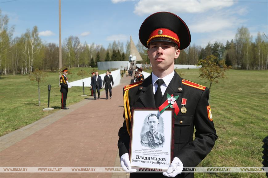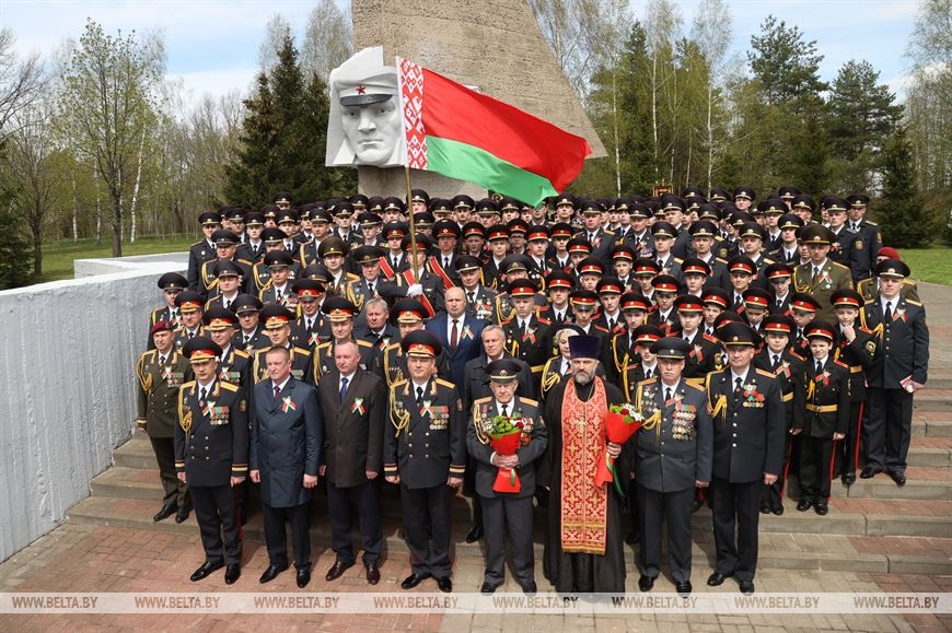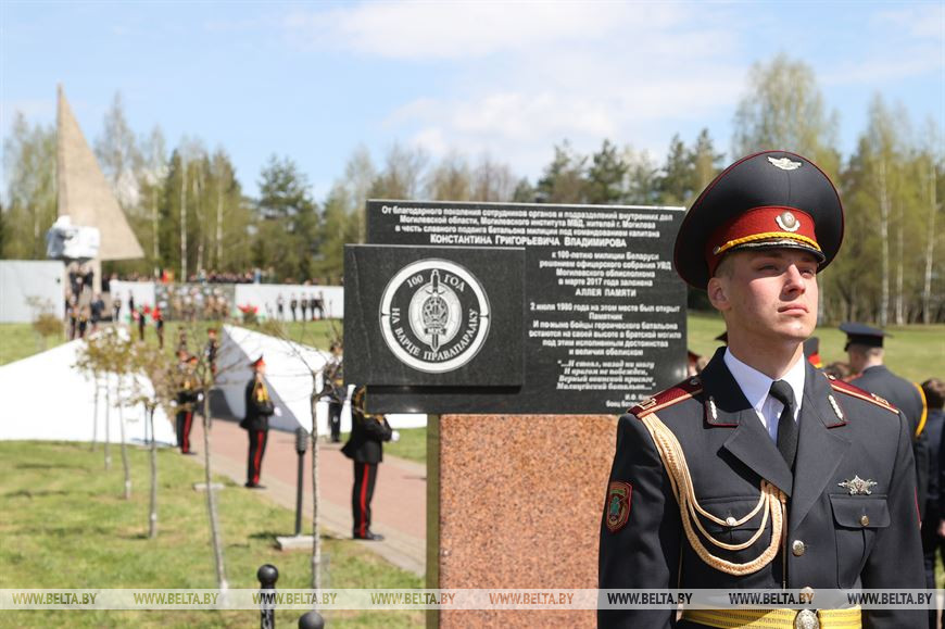 "Такое мероприятие, которое проводится на уровне Министерства внутренних дел, у этого мемориала прошло впервые. В этом году мы проводили здесь субботник, благоустраивали территорию, установили скамейки. Тогда и приняли решение, что на этом святом месте проведем праздничное мероприятие ко Дню Победы, - добавил министр. - По всей стране проходят праздничные мероприятия, посвященные Дню Победы. Сегодня руководство Министерства внутренних дел, Могилевского облисполкома возложило цветы к мемориалу, а также провело мероприятие в памятном, святом для каждого милиционера месте - у памятника батальону милиции капитана К.Г.Владимирова. В далеком 1941 году сотрудники милиции здесь первыми стали на защиту Могилева. 6 дней и ночей сотрудники сводного батальона, а это простые курсанты и милиционеры, стояли насмерть без сна и отдыха, защищая Могилев. 245 сотрудников милиции - практически все погибли на этой высоте, никто из них не дрогнул и не ушел. Осталось лишь 19 тяжелораненых сотрудников милиции. Мы помним и чтим память о наших коллегах".