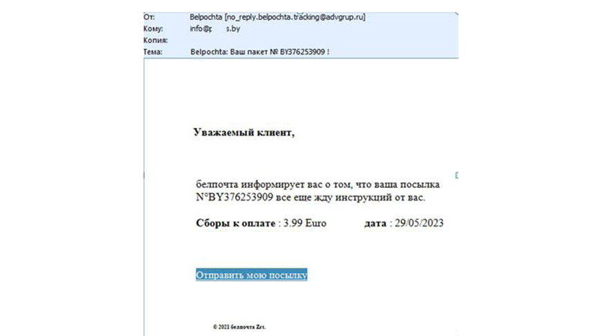 "РУП "Белпочта" не рассылает подобные сообщения. Будьте особо внимательны при переходе по ссылкам. Как правило, злоумышленники используют их для направления на поддельные интернет-страницы с целью заражения устройств вредоносным программным обеспечением и завладения персональными данными. Чаще всего целью злоумышленников является получение информации о платежной карте и хищение денежных средств", - отметили на предприятии.-0-