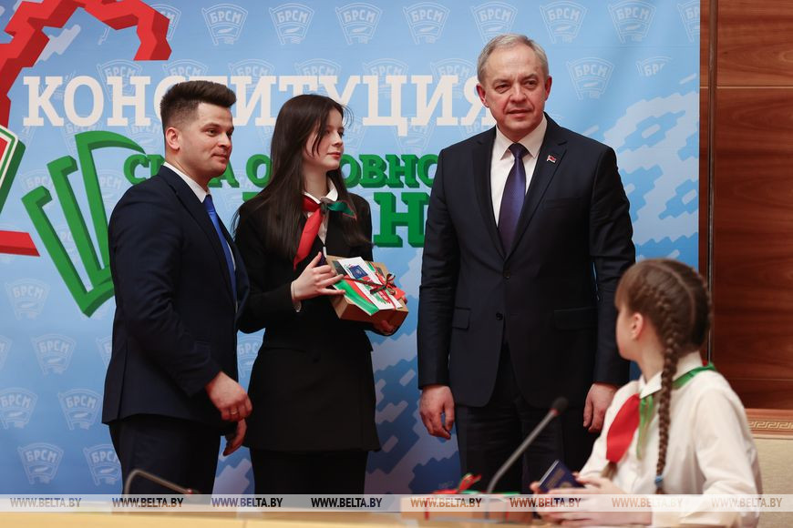 "Глубоко символично, что у вас оно происходит в особый день. Именно сегодня, 15 марта, вступили в силу изменения и дополнения в Конституцию Республики Беларусь, поддержанные 27 февраля нашими гражданами на республиканском референдуме и подписанные 4 марта Президентом Республики Беларусь, - отметил он.- Получая паспорт, помните, что не только государство отвечает за вашу судьбу, но и вы несете ответственность за судьбу своей страны. Любите Родину и знайте, что именно от вас, вашего ума, таланта, трудолюбия и активной гражданской позиции зависит ее будущее благополучие и безопасность", сказал председатель Палаты представителей Владимир Андрейченко .