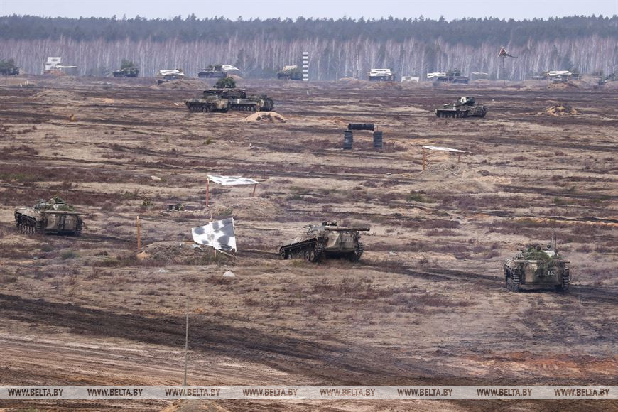 "Ежедневно на каждом из 11 участков практических действий учений войска выполняют учебно-боевые задачи как с боевой стрельбой, так и без нее. Сегодня на полигоне было продемонстрировано решение одной из таких задач - ведение наступательного боя в целях освобождения временно захваченной территории противником. Как заместитель руководителя учения скажу, что действия войск, их обученность, слаженность, совместимость, управляемость заслуживают высокую оценки", - сказал журналистам заместитель министра обороны Беларуси генерал-майор Андрей Жук.