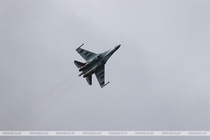 Присутствующим на полигоне продемонстрировали воздушный бой на самолетах Су-30 и Су-35, применение бомбардировочной авиации Ту-22М3 и реактивных систем залпового огня БМ-21 "Град". Борьбу со средствами воздушного нападения противника вели зенитные ракетные комплексы "Стрела-10" и "Игла-С". Инженерно-саперные подразделения разминировали проход через минно-взрывные заграждения. В контрнаступлении участвовали танки Т-72Б и Т-80, боевые машины пехоты БМП-2, БТР-82А.