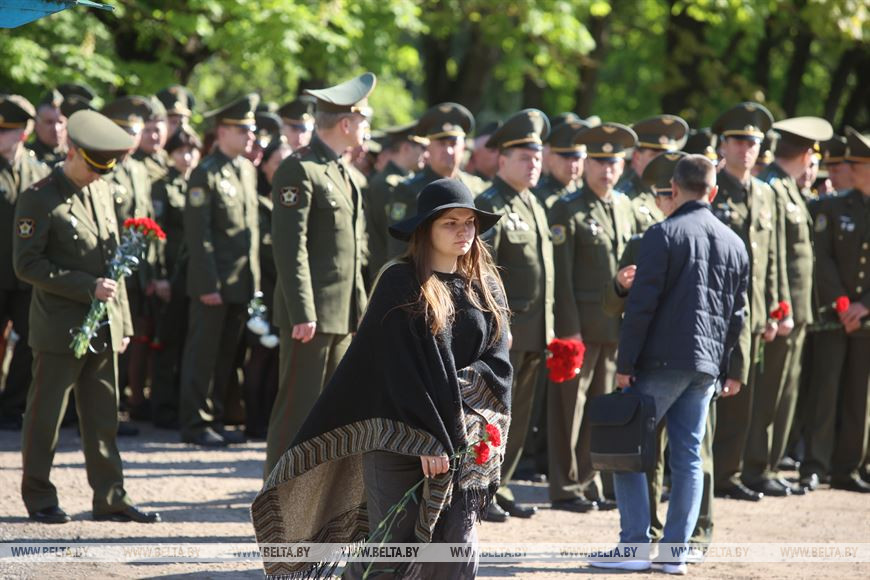 Церемония прощания проходит в клубе 116-й штурмовой авиабазы, где служили майор Андрей Ничипорчик и лейтенант Никита Куконенко. Накануне их тела по воздуху доставили из Барановичей.