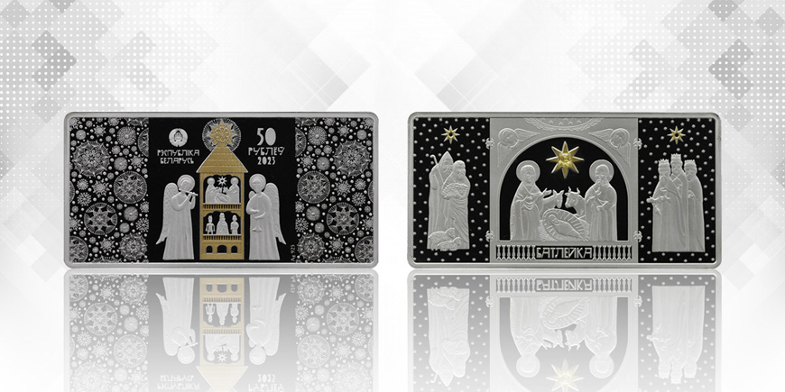 Что касается памятных монет "Беларуская батлейка", то выпускаются серебряная номиналом Br50, массой 67,2 г, пробой сплава 925, тиражом 599 штук, а также медно-никелевая - номиналом Br1, массой 57,7 г, тиражом 1,7 тыс. штук. Монеты имеют прямоугольную форму, с лицевой и оборотной сторон - кант, выступающий по периметру. Боковая поверхность монет с насечкой.